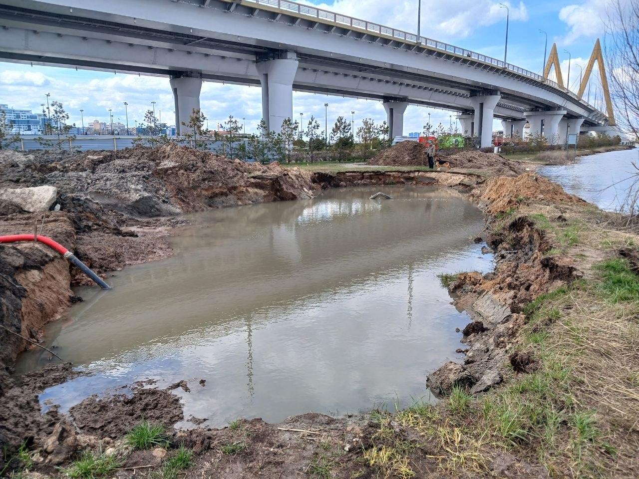 Под мостом Миллениум в Казани обнаружен разлив нефтепродуктов. По словам экологов, раствор попал в реку после буровых работ.