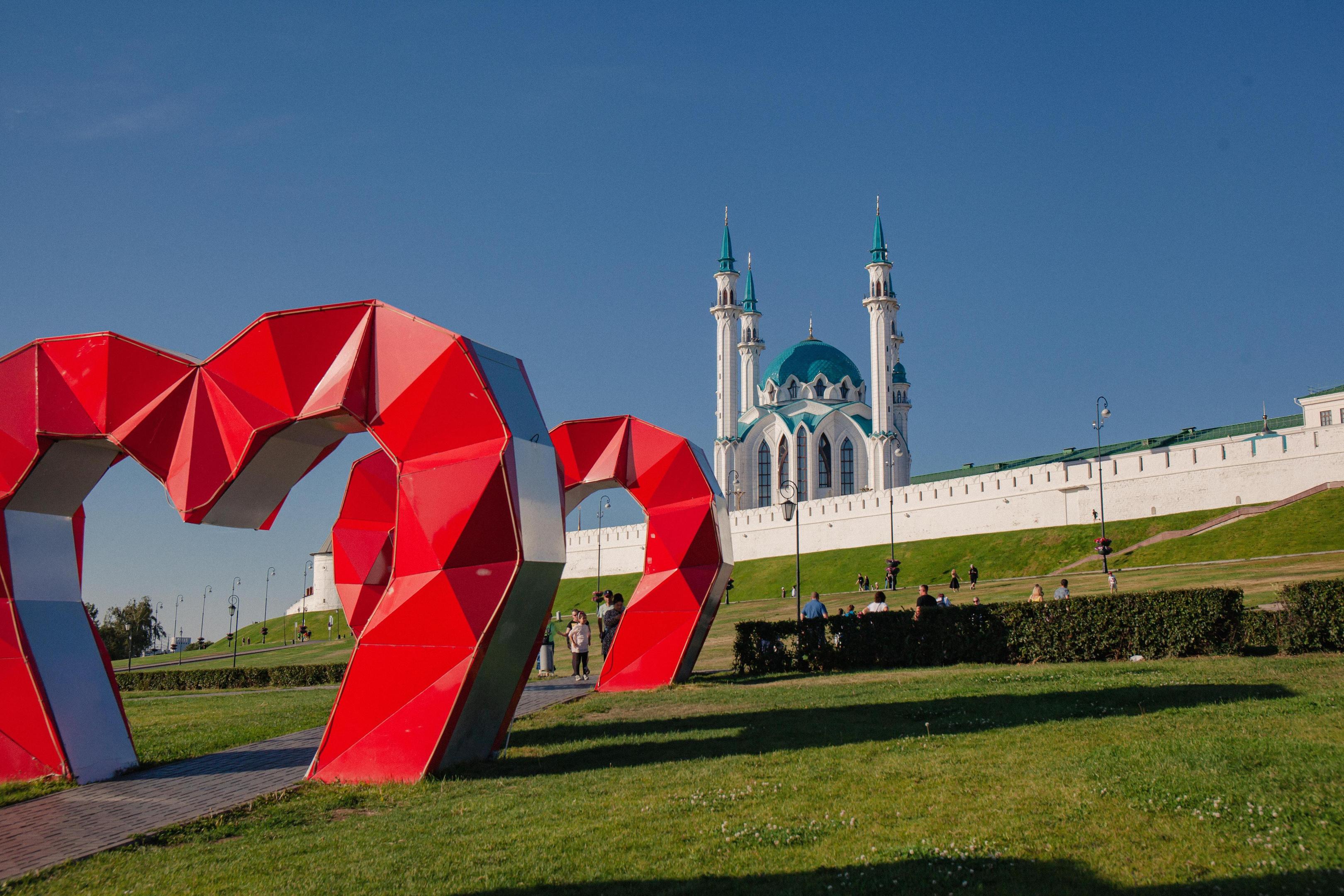 Три объемных сердца установлены на площади Тысячелетия у Казанского Кремля