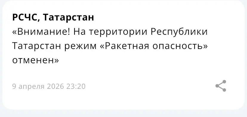 В Татарстане сняли режим ракетной опасности