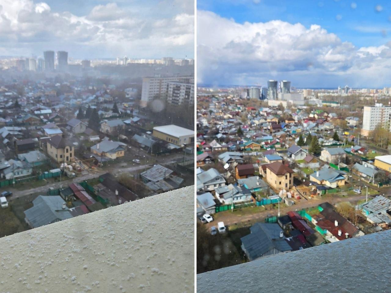 Утром 29 апреля Казань вновь столкнулась с градом и снегом. Как сообщается, обильные осадки выпадали в разных районах города несколько раз за утро.