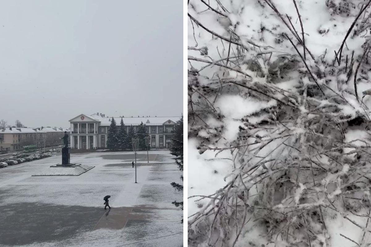 Крупные снежные хлопья покрыли улицы города, и некоторые люди, по привычке, достали зонтики. Администрация Альметьевска поделилась видеозаписью этого природного явления.